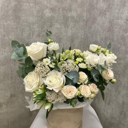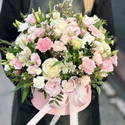 Данный букет - пример нашей работы. Менеджер свяжется с Вами для согласования, и основываясь на Вашем выборе и наличии цветов по сезону, наши флористы соберут подобный букет. По готовности пришлем фото Вашего букета 🌿